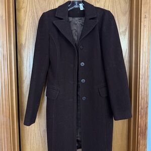 Stylish black wool coat with button closure. Perfect for formal occasions. Bought from Nordstrom, only wore a couple of times.