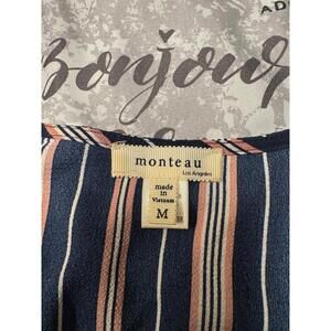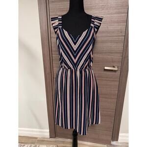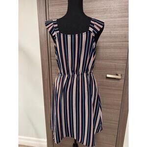 Monteau Los Angeles Women’s Dress M Navy Blue White Pink Striped Sleeveless