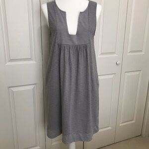 J.Crew Factory Gray Stripe Sleeveless Cotton Pocket Dress Notch Neck Small