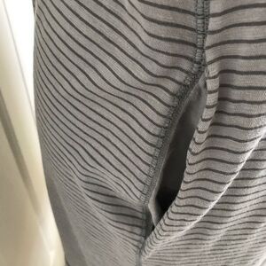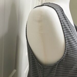 The gray + charcoal stripe pattern makes it super versatile for sneakers, sandals, or a denim jacket. Perfect for casual days, travel, errands, or a laid-back weekend look.