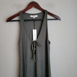 Joah Brown Plunge Tie Midi Dress in Mineral Flexrib size S/M NWT