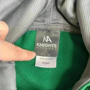 Show your support for the North Dakota Fighting Hawks with this green Knights Apparel hoodie. Made for men in size XL, this pullover hoodie is perfect for any fan of the team. The hoodie features the team's logo on the front and is made of high-quality materials to ensure durability and comfort.