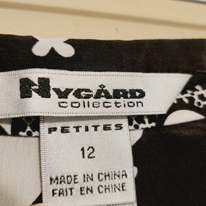 Women's vintage 100% silk A-line floral print skirt by Nygard Collection, size 12 petite. Skirt is lined with a hidden side zipper. Skirt in excellent pre-owned condition overall; some wear.