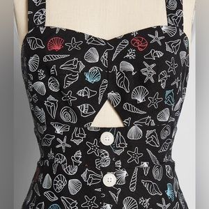 Cute Modcloth Black Seashell seashore print Fit and Flare Dress NWT size 10
