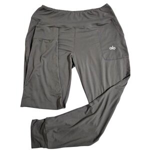 Alo Yoga Charcoal Gray High Rise Jogger Leggings Pockets Athleisure Workout XL
