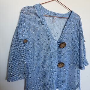 Lulu B Womens Cardigan Sweater Small Open Weave Button Front Coastal Boho Artsy
