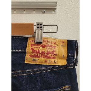 Levis 501 Jeans 31 x 32 Mens Classic Straight Leg Button Dark Wash Non Stretch