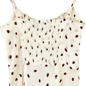 Realisation The Alba - Silk Strawberry Print Fitted Bodice Milkmaid Midi Dress