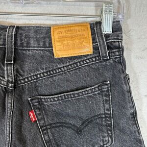 Keywords: Levis Premium, 80s Mom Shorts, High Waisted, Black Denim, Vintage Style, Retro, Cutoffs, Summer Fashion, Size 25, Washed Black, Denim Shorts