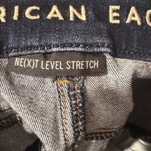 Trendy dark blue jean shorts with distressed details. Rolled cuffs for a casual look. Perfect for everyday wear.