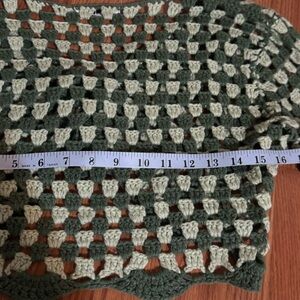 Stay stylish with this beautifully crocheted women's sweater. Featuring a unique green and cream pattern, this piece is perfect for adding a touch of elegance to your wardrobe.