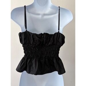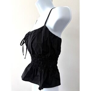 WAYF Black Smocked Peplum Tank Y2K Indie Flirty Waist Sz Medium Top Stretch Fit