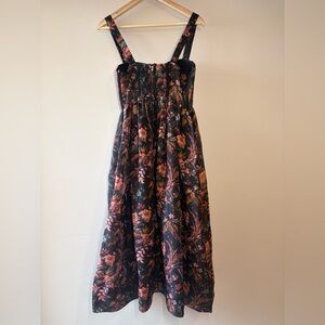 NEW Cara Cara Phoebe Floral Linen Silk Midi Bustier Dress Pindell Black US6 UK10