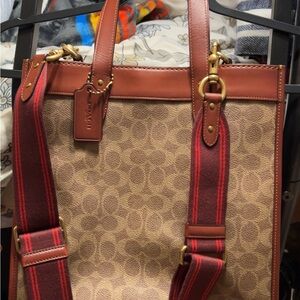 Coach Field Tote Crossbody Signature Canvas Horse & Carriage Bag Tan Truffle