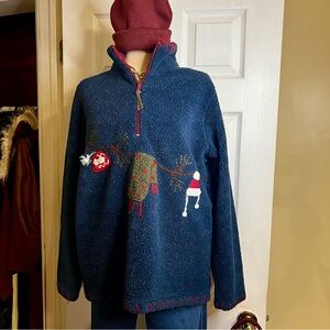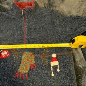 Vintage Faded Glory Ugly Holiday Fleece Zip Yarn Trim Design Cozy Sweater Large