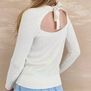Banana Republic cream Keyhole Open Back Bow Tie knitted Crewneck Sweater Small