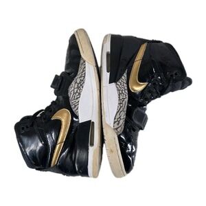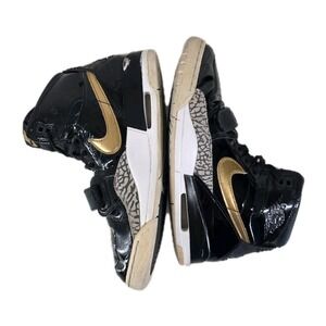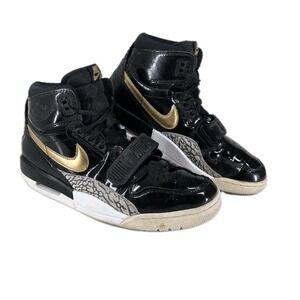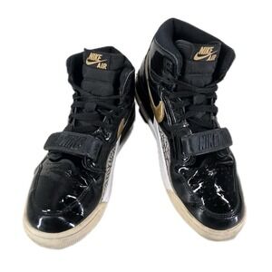 Jordan Legacy 312 Sneakers Mens 8 Black Gold Patent Leather AV3922-007 Hi Top