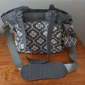 This listing is for a Disney brand thermal cooler family picnic tote. It is made from water resistant canvas, with an all over Mickey Mouse head outline print. There is one compartment on the top, separated by a zippered, insulated bottom to keep things cold. No stains, snags or rips. The base measures 15" by 6" and is 14 1/2" tall. There are dual handles so it can be carried as a shoulder bag or crossbody. All of the zippers are in perfect working order. There is a side pocket on the front, with mesh pockets to hold water bottles. The inside is also waterproof with a top zipper. I also have a couple other bags listed in my closet. One is a Vera Bradley diaper bag, and the other is a JJ Cole Diaper bag. All of these are considered unisex. This listing is only for the Disney themed tote described. Buy with confidence, careful packaging promised. I love to bundle.