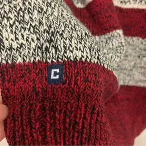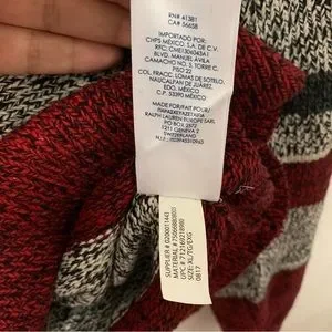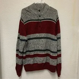 Chaps Ralph Lauren Sweater Mens XL Gray Red Striped Knit Henley Button Collar