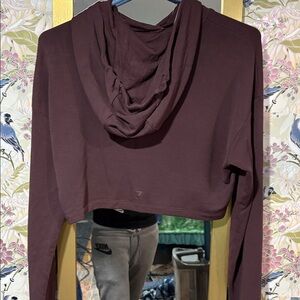 Chic and cozy cropped hoodie. Ideal for workouts or casual wear. Features a deep red hue.