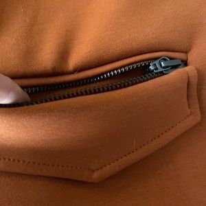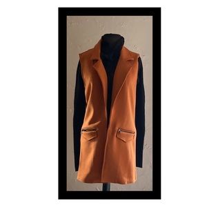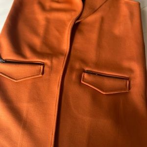 Stylish orange vest by Attyre. Features sleek black accents. Perfect for layering.