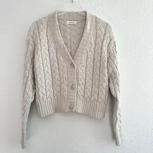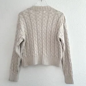 Naadam Cable Knit Cardigan Sweater Women Small Oatmeal Cropped V-Neck Minimalist