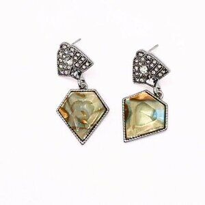 Silver Crystal Abalone Colored Stone Dangle Earrings