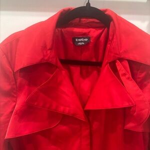 bebe Vibrant Red Long Sleeve trench coat size large elegant date evening
