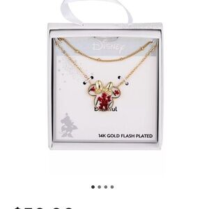 Disney Minnie Mouse 14K Gold Flash Plated Dried Flower Layered Necklace
