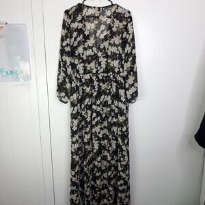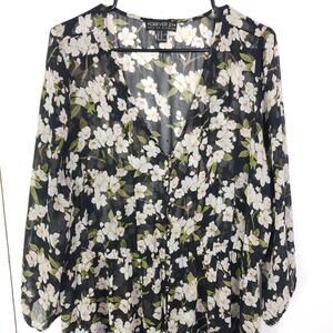 Forever 21 Top Womens 3X Duster Kimono Longline Floral Button Front Lightweight
