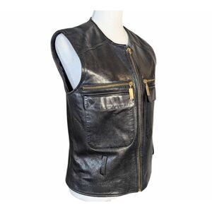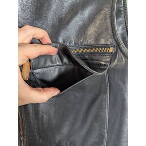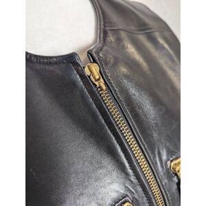 Vintage Vakko Black leather zip front pocket biker vest womens XS/S
