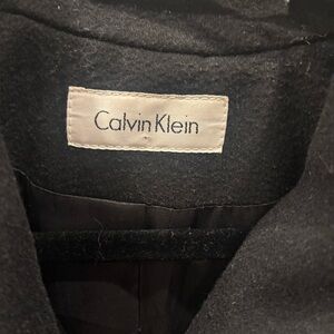 Chic black outerwear from Calvin Klein. Perfect for any occasion. Size 6 vintage 100% wool made in USA pea coat maxi long black coat winter wool warm
