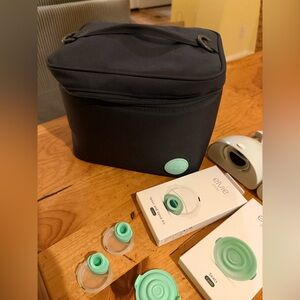Elvie with lots of extras and parts, both sets of valves and seals are new and haven’t been used one set is in the box the other I took out to assemble the pump. Great working condition. I only used this for about 3 months 2-3 times a day as it wasn’t my main pump.