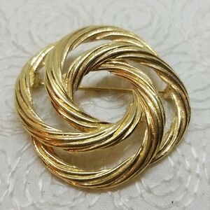 Monet Swirl Brooch Pin Open Gold Tone Circle