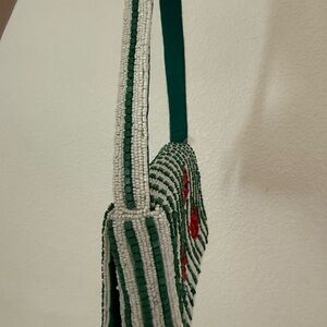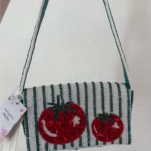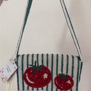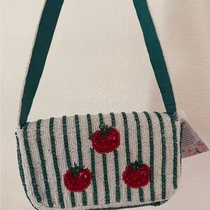 Elevate your style with this chic beaded crossbody bag featuring a playful tomato design. Perfect for adding a unique touch to any outfit.