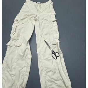 Bershka Pants Women's Small Cream Low Rise Cargo Wide Leg Utility Cotton Outdoor