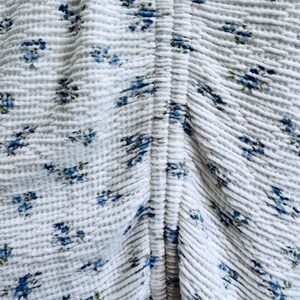 Hollister Floral Long Sleeve Ruched Front Crop Top Blouse Size M White Blue