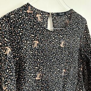 Excellent like new pre-owned condition with no stains, tears or flaws. Pretty feminine fluttery blouse for casual or office attire. 100% silk from Madewell.