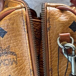 MCM Visetos Cognac Monogram Boston Bag with Crossbody Strap and COA