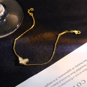 Elegant gold bracelet featuring a delicate white butterfly charm. Ideal for a touch of sophistication.