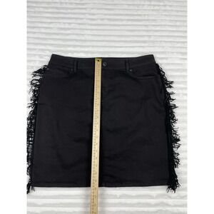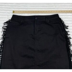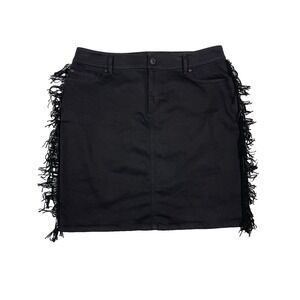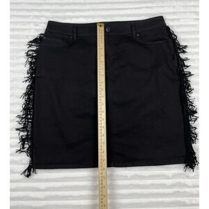 INC International Concepts Women's Fringe-Trim Denim Black Skirt Size 14 Western