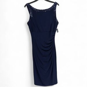 American Living Navy Blue Sequin Trim Ruched Sheath Dress - Size 6