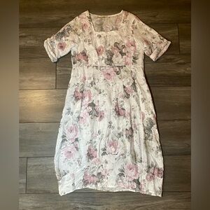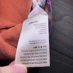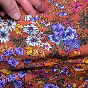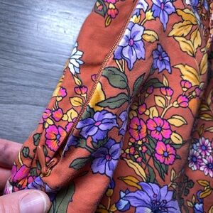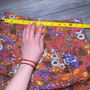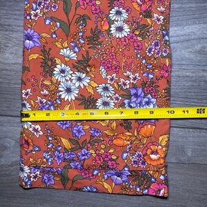Stylish burnt orange pants featuring a mix of wildflowers patterned all over. They are high waisted with belt loops and zipper pockets. They also have back pockets. So perfect for upcoming spring! EUC, no flaws.