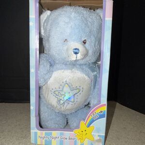 The Vintage HUGFUN Blue Rattle Teddy Bear Plush is a 13-inch stuffed animal in a Care Bear style. This original plush bear by Hugfun features a yellow color and is made of plush material. Perfect for collectors or those looking to add a unique bear to their collection, this teddy bear is sure to bring joy and nostalgia to any animal-themed space.