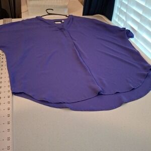 Chico's Large Blue Purple V-Neck Button Relaxed Fit Everyday Band Collar Blouse