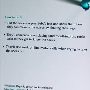 Vibrant multicolor ball with soft white sound socks and Play Guide with expert tips, development info and at- home activities for ages 5-6 months. Excellent used condition
