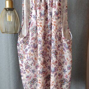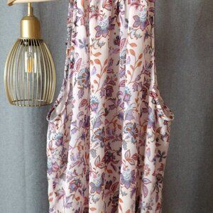 CeCe Floral Sleeveless Blouse XL – Tie Neck Mock Neck Pastel Print Top