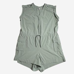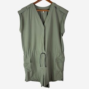 Athleta Sutton Romper Size 10 Green Lightweight Tie Waist Wrinkle Resistant
