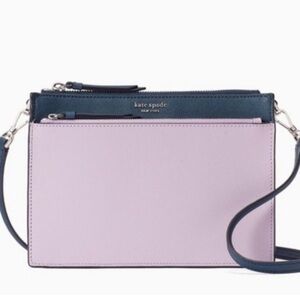 Kate Spade Cameron Lavender Mist Navy Saffiano Leather Crossbody Bag