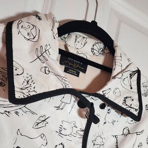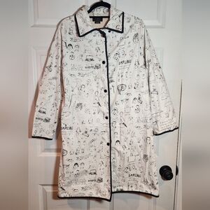 Kate Spade Maira Kalman Vintage Unique Rare Various Illluminations White Black Trench Rain Coat M. Minor cracks in material. Approx 21in pit to pit, 37.5in length
